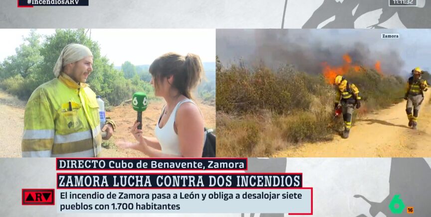 Rómulo, bombero forestal de la Junta de Castilla y León, ha hablado sobre las condiciones extremas en las que está trabajando en esta lucha contra el fuego: "El calor que pasamos y la deshidratación son lo más duro". "Aunque tenemos comida, también pasamos hambre, porque son muchas horas seguidas de trabajo", añade.