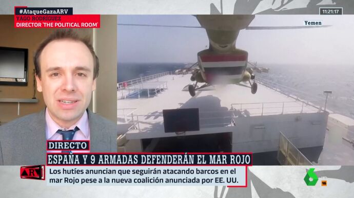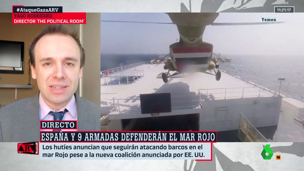 Yago Rodríguez ha analizado en Al Rojo Vivo esta operación, destacando que es muy "importante y complicada". El experto en política internacional ha recordado que Irán le ha entregado todo tipo de misiles, incluso balísticos con capacidad antibuques, a los hutíes.