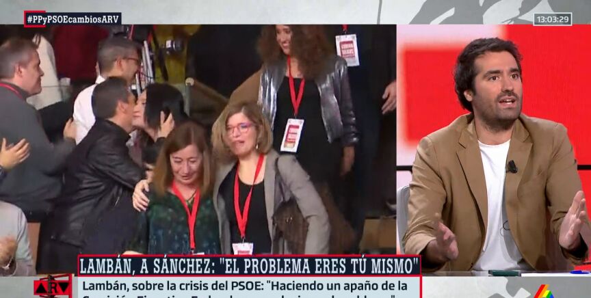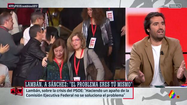 "Solo puede purgar a Cerdán si se purga a sí mismo", ha destacado. El periodista ha indicado que cree que el sanchismo ha entrado en un nivel de "ensimismamiento tal" que no tiene capacidad para "convencer a alguien que no forme parte del aparato" para que entre en la Ejecutiva.
