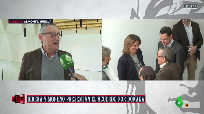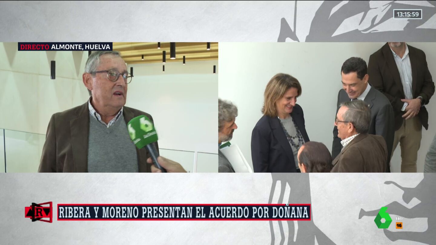 El biólogo, Miguel Delibes de Castro, presidente del Consejo de Participación de Doñana, asegura a los micrófonos de laSexta, en directo para Al Rojo Vivo, que no ha podido participar en el acuerdo, pero el hecho de que lo haya ya es un "motivo de satisfacción". Sin duda, dice el biólogo, que con este acuerdo gana Doñana, "porque Doña necesitaba un acuerdo para tirar hacia adelante".