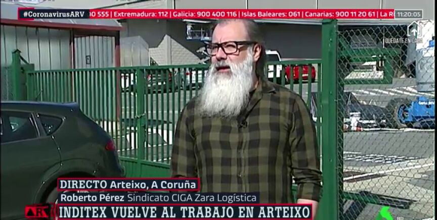 El personal de logística y fábrica regresa este lunes a la sede central de Inditex, cuyo almacén continuaba activo. Roberto Pérez, representante sindical, relata cómo se vive allí esta jornada de retorno a la actividad en plena crisis por el coronavirus.