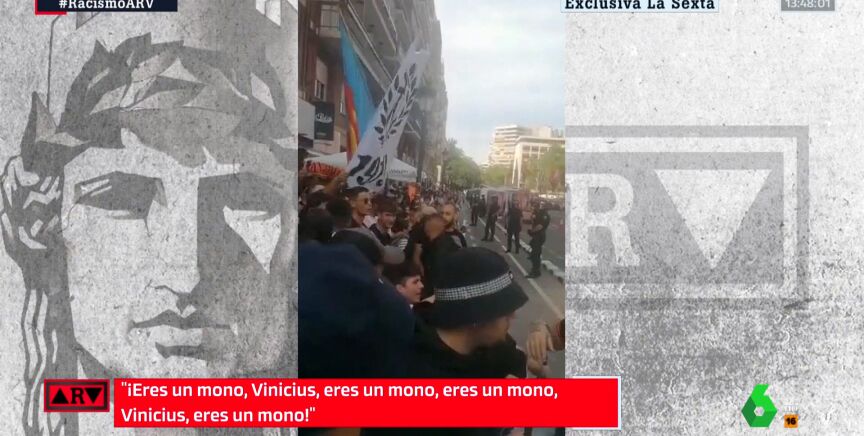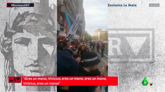 Muy poco después, ya se registran insultos directamente contra Vinicius, a quien dirigen en primer lugar onomatopeyas imitando a un mono. "Uh, uh, uh, uh, uh", se escucha perfectamente vociferar a los ultras del equipo valenciano, que inmediatamente después lanzan una nueva ofensiva racista contra el futbolista brasileño: "Mono, vete a tu país. Eres un mono, Vinicius eres un mono".
