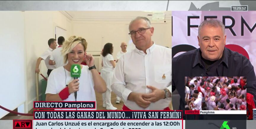 Cristina Pardo vuelve a retransmitir en directo para Al Rojo Vivo el arranque de los Sanfermines. Eso sí, "haciéndose mayor", tal y como bromea la periodista en este vídeo con Antonio García Ferreras.