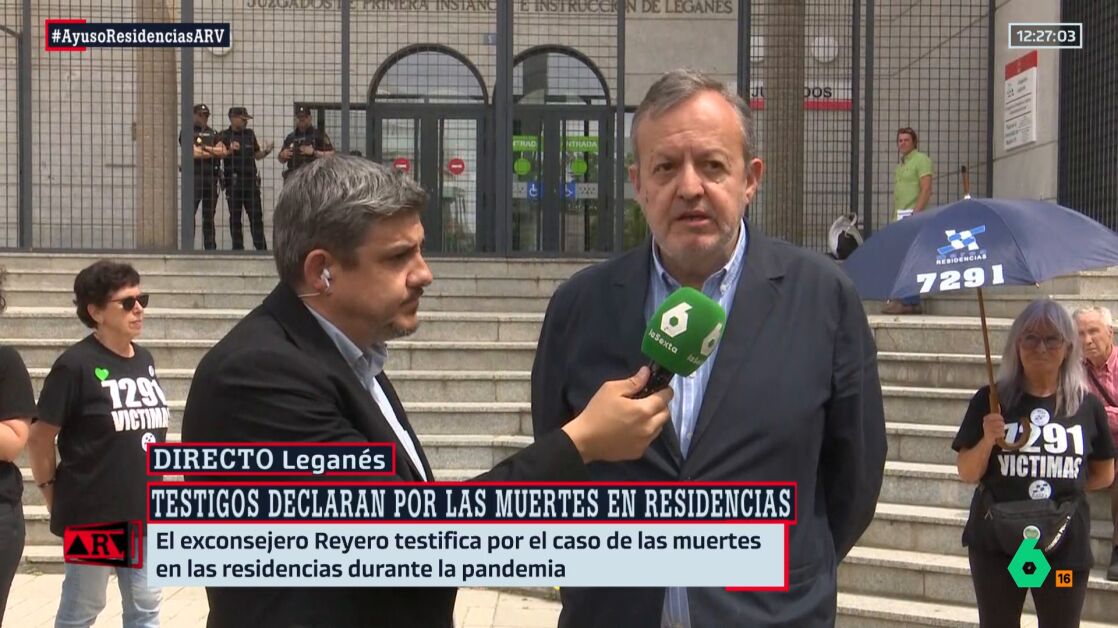 Alberto Reyero, exconsejero de Políticas Sociales de Isabel Díaz Ayuso, fue recibido con aplausos en el juzgado de Leganés por familiares de ancianos fallecidos en residencias madrileñas durante la pandemia. Acudió a testificar en la segunda causa sobre los 'protocolos de la vergüenza', que prohibían el traslado hospitalario de ancianos. En Al Rojo Vivo, Reyero calificó estos protocolos de "discriminación clara" y "auténtica barbaridad" por excluir de atención hospitalaria a personas dependientes. Criticó su contenido como "éticamente reprochable" y un "edadismo terrible". Reyero, quien informó a las autoridades sanitarias sobre su desacuerdo, espera que esta situación no se repita.