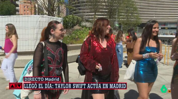 El periodista Jaime Rull acude al "lugar de los hechos" horas antes de que se abran las puertas (16:30h) para dar comienzo al primero de sus conciertos y entrevista a varias 'swiftie' que es como se conoce a los fans de Swift. Hasta el mismísimo Antonio García Ferreras se declara fan de la cantante.