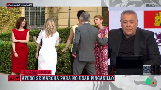 Isabel Díaz Ayuso ha decidido abandonar al Conferencia de Presidentes al escuchar a Pradales hablar en euskera. Ferreras ha criticado que se centre en debatir sobre pinganillo sí o no "con la que hay montada en España".