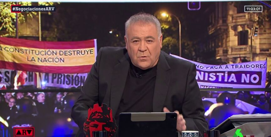 Antonio García Ferreras ha reaccionado de forma contundente a las violentas protestas que se están produciendo ante la sede del PSOE en Ferraz contra una ley de amnistía que todavía no se ha presentado. "Es curioso, porque algunos nostálgicos del franquismo llaman dictador a Pedro Sánchez", ha destacado.