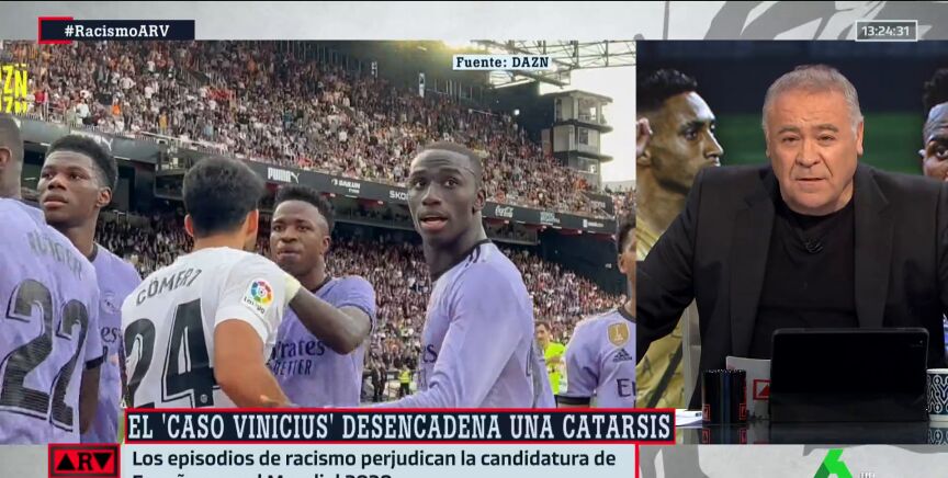 Antonio García Ferreras ha reaccionado de forma rotunda a los insultos racistas que Vinicius ha recibido en Mestalla, recordando que esta no era la primera vez que tenía que vivir algo así. El jugador lleva recibiendo este tipo de ataques en estadios españolesdesde hace cinco años, una situación contra la que hay que luchar.