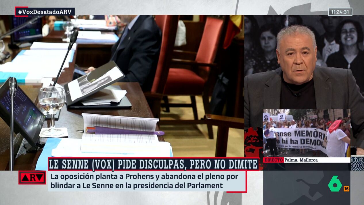 El presentador y director de Al Rojo Vivo ha señalado que, tanto Vox como el PP, tienen una "responsabilidad" tras lo ocurrido con Le Senne en el Parlament balear. "¿Cómo permite que este personaje siga al frente?", se ha preguntado.