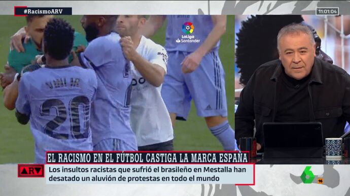 Antonio García Ferreras ha reaccionado de forma contundente a losinsultos racistas que recibió Vinicius durante el partido entre el Real Madrid y el Valencia C.F.