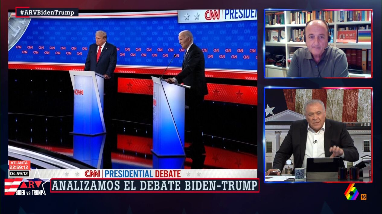 El debate entre Joe Biden y Donald Trump ha dejado una infinidad de análisis en la mesa de Al Rojo Vivo, como las críticas al presidente de Estados Unidos o el tono empleado por Trump. Antonio García Ferreras ha llegado a ver "contenido" a un Trump que cree que "es como si llevase un par de lexatines para no perder los estribos".