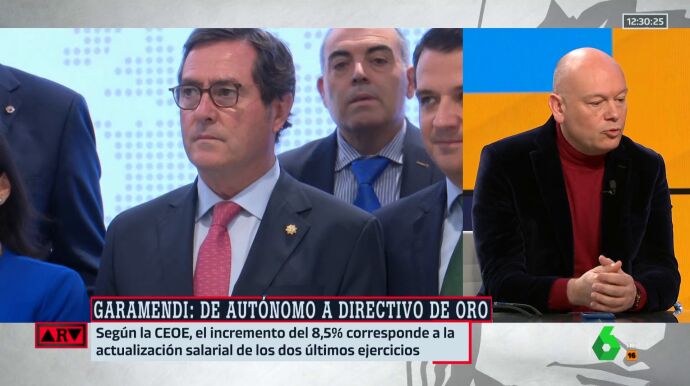 La mesa de Al Rojo Vivo ha analizado la polémica desatada tras conocerse que Antonio Garamendi, presidente de la patronal CEOE (Confederación Española de Organizaciones Empresariales) se ha subido el sueldo en total un 9% desde su primer mandato, alcanzando los 380.000 euros de salario.