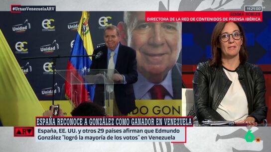 España y otros 29 países firman un documento en el que aseguran que González "logró la mayoría de los votos en Venezuela". La directora de la red de contenidos 'Prensa Ibérica' analiza en Al Rojo Vivo esta declaración.