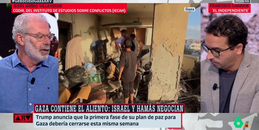 Jesús Núñez Villaverde, codirector del Instituto de Estudios sobre Conflictos y Acción Humanitaria (IECAH), analiza las últimas declaraciones de Trump, quien ha anunciado que la primera fase de su plan de paz para Gaza debería cerrarse esta misma semana.