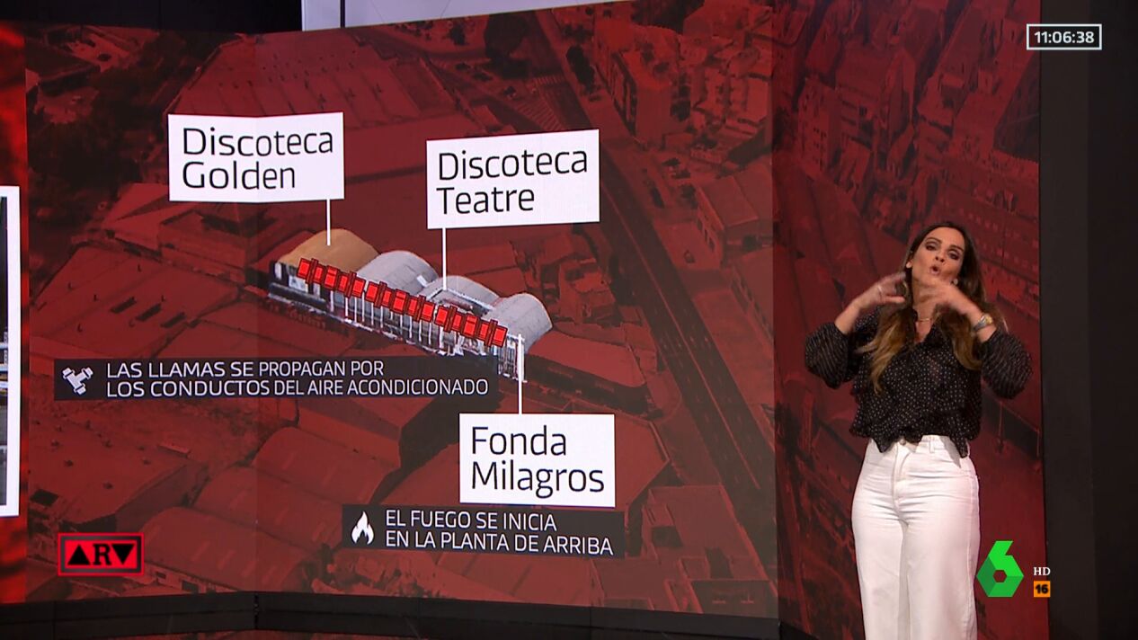 La periodista Ana Cuesta explica todo lo que se sabe sobre cómo se propagó el incendio de Murcia en una zona de ocio nocturno situada al este de la ciudad. El incendio pudo empezar en la primera de las discotecas.