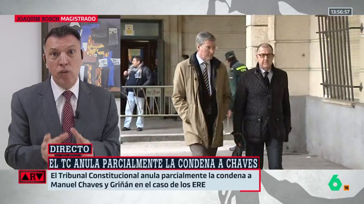 El magistrado Joaquim Bosch ha aclarado en Al Rojo Vivo por qué el Tribunal Constitucional ha decidido anular parcialmente las condenas de Manuel Chaves y José Antonio Griñán por los ERE.