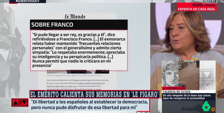 Mabel Galaz, periodista experta en Casa Real, analiza en este vídeo que una de las cosas que más ha llamado la atención de las memorias del rey emérito: cómo habla del dictador. En el vídeo, los detalles.