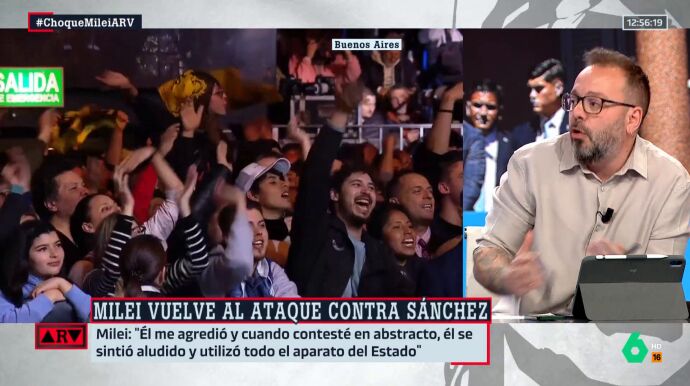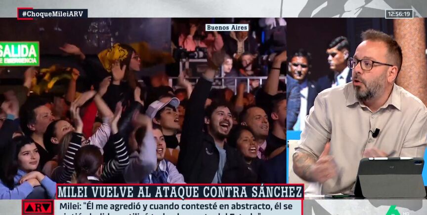 El periodista Antonio Maestre ha asegurado en Al Rojo Vivo que a Javier Milei "no se le puede ganar" en su terreno de juego, criticando que la ministra de Igualdad, Ana Redondo, le haya llamado "hiena".