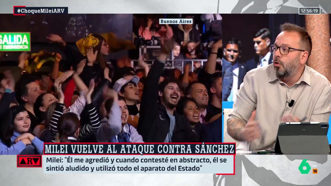 El periodista ha confesado que no comprende que el Gobierno haya optado por retirar de manera definitiva a la embajadora española en Argentina, destacando que es una medida "absurda" que solo beneficia a Milei y perjudica a los argentinos que intentan vivir mejor.