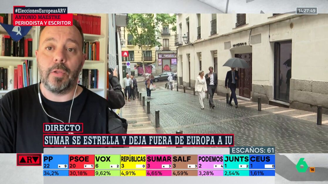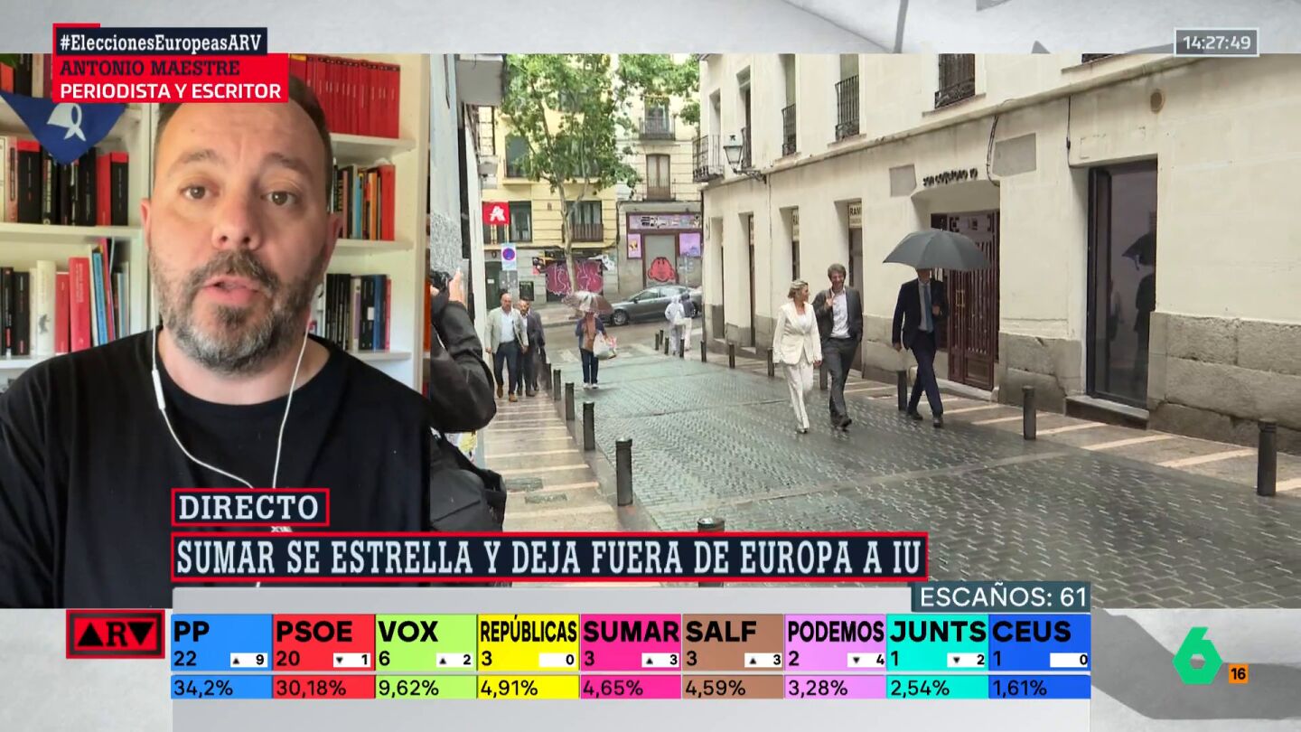 El periodista Antonio Maestre ha analizado en Al Rojo Vivo el resultado que ha obtenido Sumar en las elecciones europeas, señalando que deben "tomar una decisión" porque ha sido "nefasto".