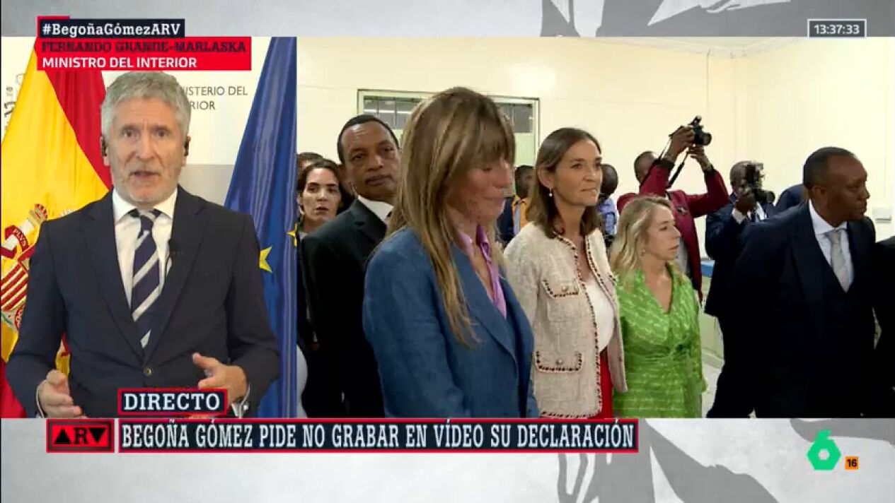 El ministro del Interior, Fernando Grande-Marlaska, ha asegurado este jueves a Antonio García Ferreras en Al Rojo Vivo que la instrucción del caso que afecta a Begoña Gómez se encuentra "extramuros de lo que sebe ser una instrucción" y que, en este sentido, "causa indefensión" porque "evidentemente, le afecta a derechos muy personalísimos".