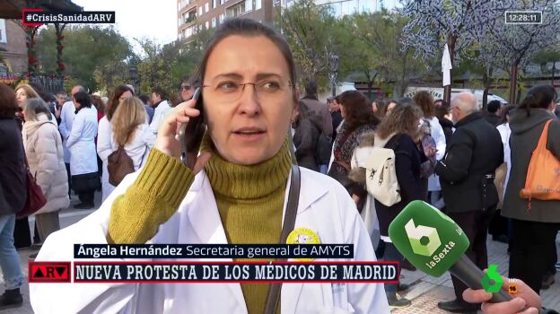 La secretaria general de Amyts, Ángela Hernández, ha cogido su teléfono frente a las cámaras de un equipo de laSexta y ha intentado contactar con Enrique Escudero. Este no ha respondido a la llamada, pero Hernández le ha dejado un mensaje en su contestador.
