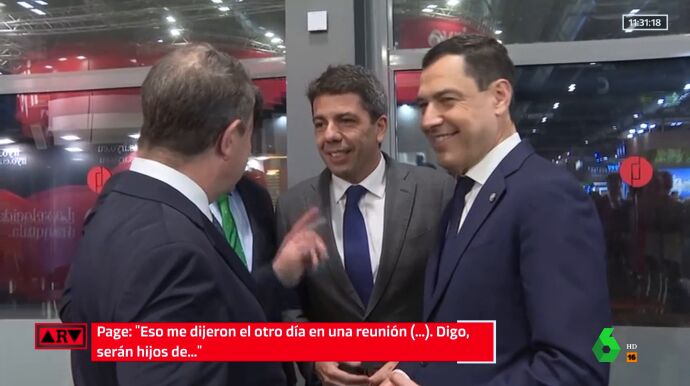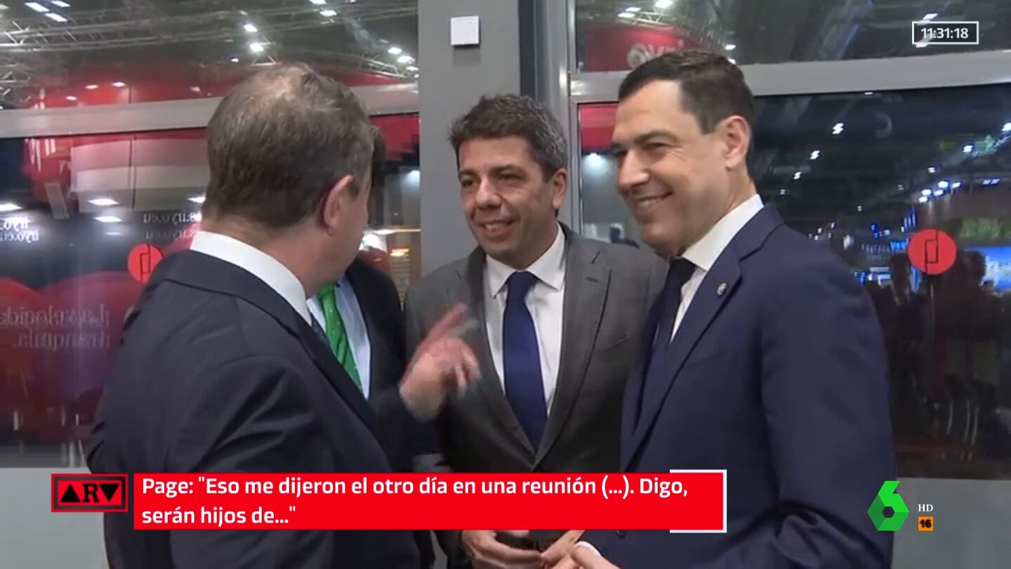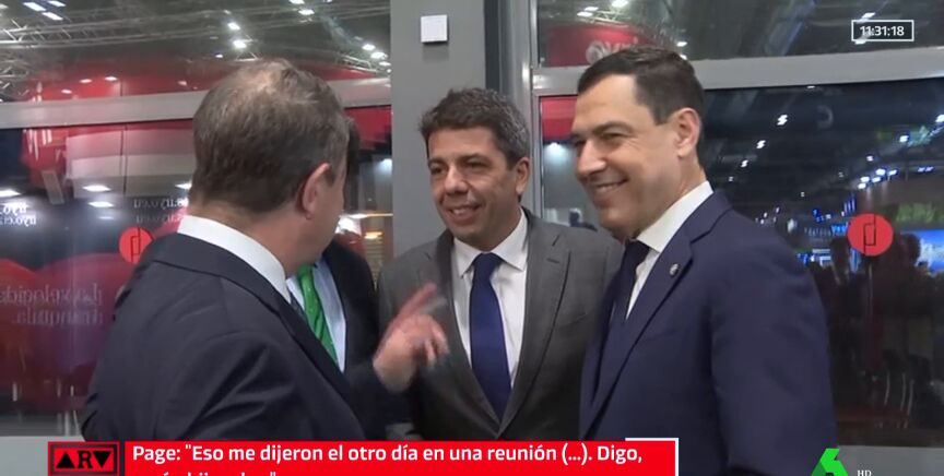 Todo se gestó durante el evento de Ifema. Page, que acababa de llevar, saludaba primero al presidente murciano, López Miras. Ambos se acercan a Juanma Moreno, que estaba hablando con la presidenta de Extremadura. Pero buscan a alguien más. "Carlos", expone Page mientras Miras le llama con la mano. Así, llega Mazón y esperan a que Juanma Moreno deje de hablar para 'reunirse' entre los cuatro.
