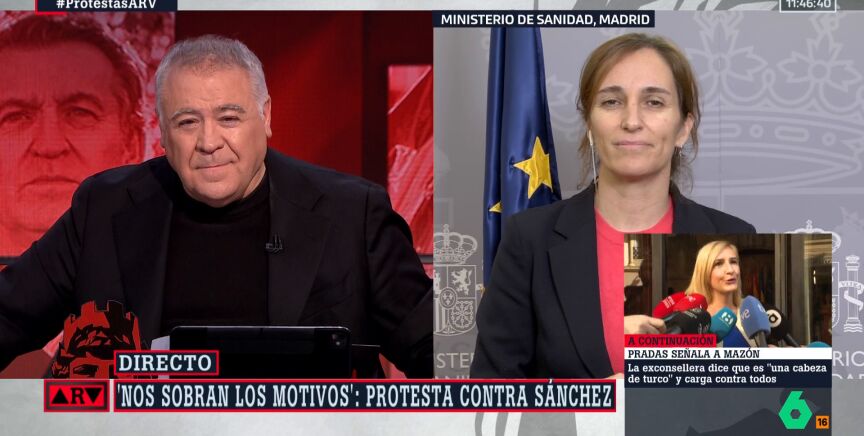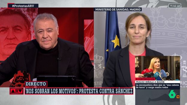 "Estamos acostumbrados a desayunarnos con los delirios de la señora Ayuso y a desayunarnos con este dictadorzuela de Chamberí dando lecciones, insultando permanentemente y luego asombrándose de que haya manifestaciones violentas delante te de Ferraz", ha comentado García en Al Rojo Vivo al ser preguntada por ese discurso de Ayuso.