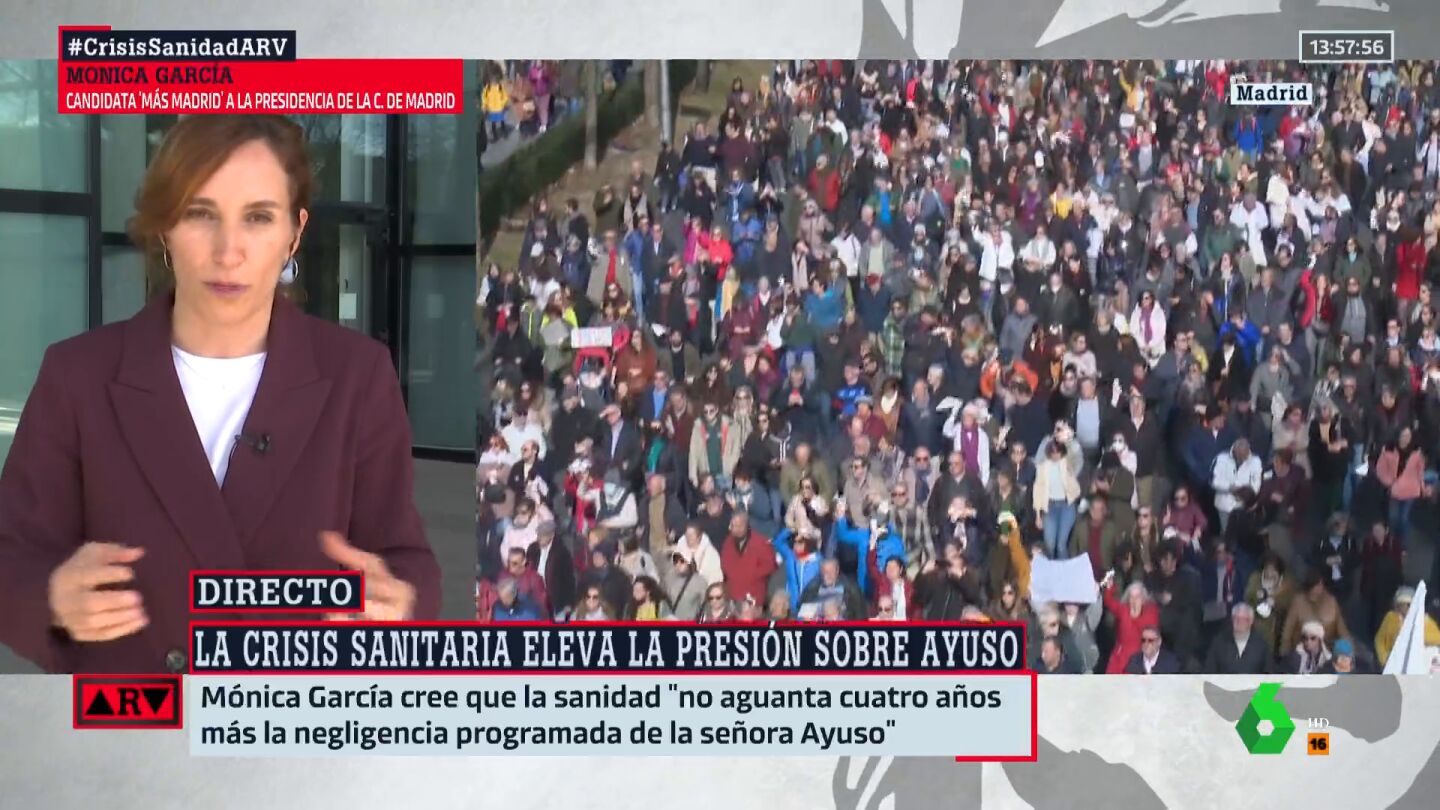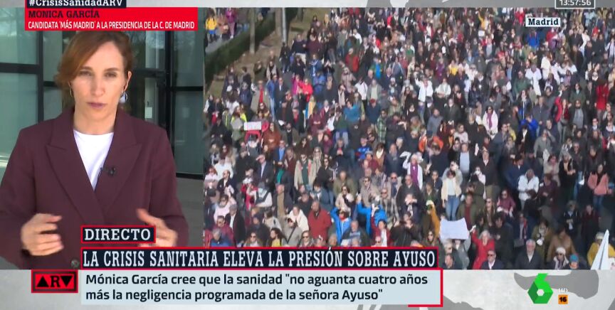 Mónica García, candidata de Más Madrid a la presidencia de la Comunidad en las elecciones del 28 de mayo, ha intervenido en Al Rojo Vivo tras la multitudinaria marcha celebrada el domingo en defensa de la Sanidad pública, afirmando que en esos comicios solo habrá una opción: "Sanidad o Ayuso".