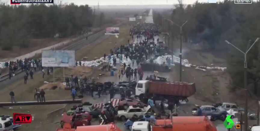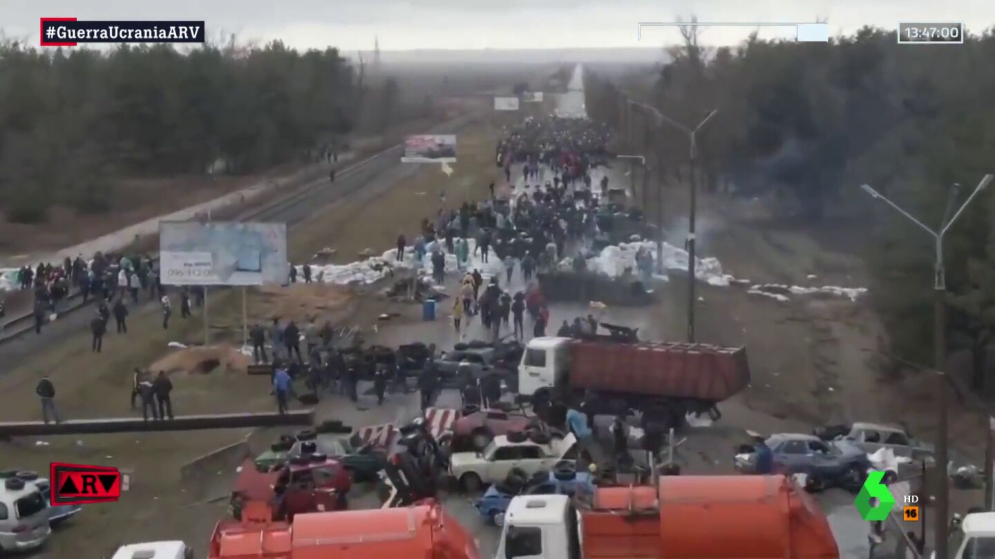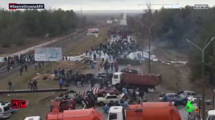 Los ucranianos están creando una fuerte resistencia civil, en muchas ocasiones, incluso sin armas. Un nuevo vídeo, recogido por Al Rojo Vivo en el 'play' principal de esta noticia, muestra cómo los ciudadanos de Enerhodar han cortado con su propia presencia una carretera para evitar el paso de las tropas rusas por ella.