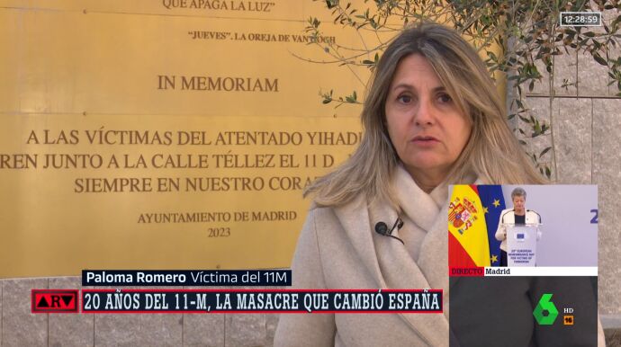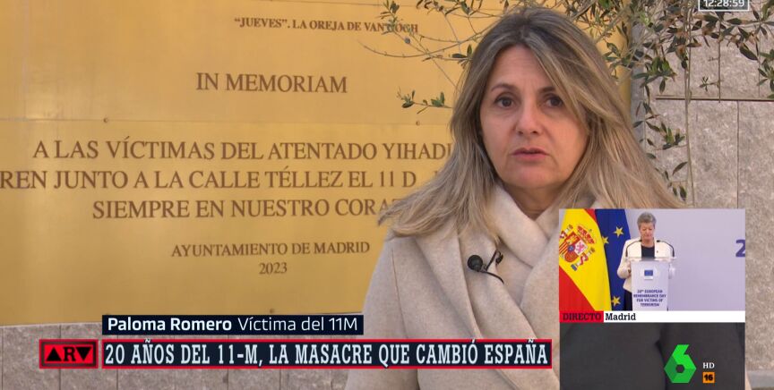 Paloma Romero, víctima del 11M, habla en directo para Al Rojo Vivo desde el lugar donde se conmemora a las víctimas del atentado yihadista que ocurrió el día 11 de marzo de 2004 en Madrid. El peor atentado de nuestra historia: se cobró la vida de 192 personas. Romero habla 20 años después de todo aquello.