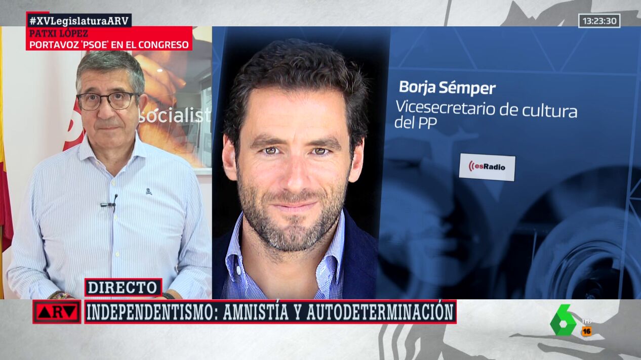 El Vicesecretario del PP añadió que " estamos seguros que parte del electorado socialista está de acuerdo con que España no puede depender de Puigdemont, Otegi o Junqueras". En respuesta a estas declaraciones Patxi López expresó en ARV "ningún socialista va a permitir por acción o por omisión" que la ultraderecha decida las políticas del Gobierno de España. "A Borja le tengo mucho cariño, pero le diría que deje de hacer el tonto porque yo soy de PSOE de toda la vida y no va a haber de ninguna de las maneras eso que están diciendo" concluyó el secretario de Política Federal del PSOE.