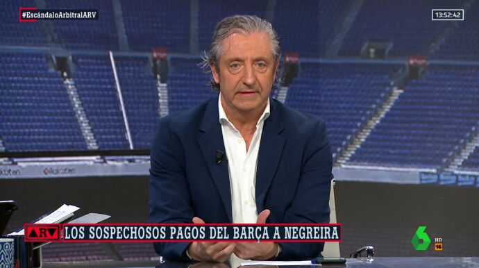 "Hablamos de lo bonito del fútbol, con la gente que sí cree de verdad que esto es limpio", incide el presentador deportivo, que sostiene que "lo de ahora es muy grave para la imagen del fútbol español". "No solo para Barça, no solo para Laporta o para Bartomeu o para los árbitros, el fútbol español queda manchado también", asevera.