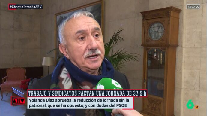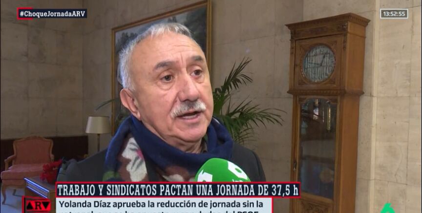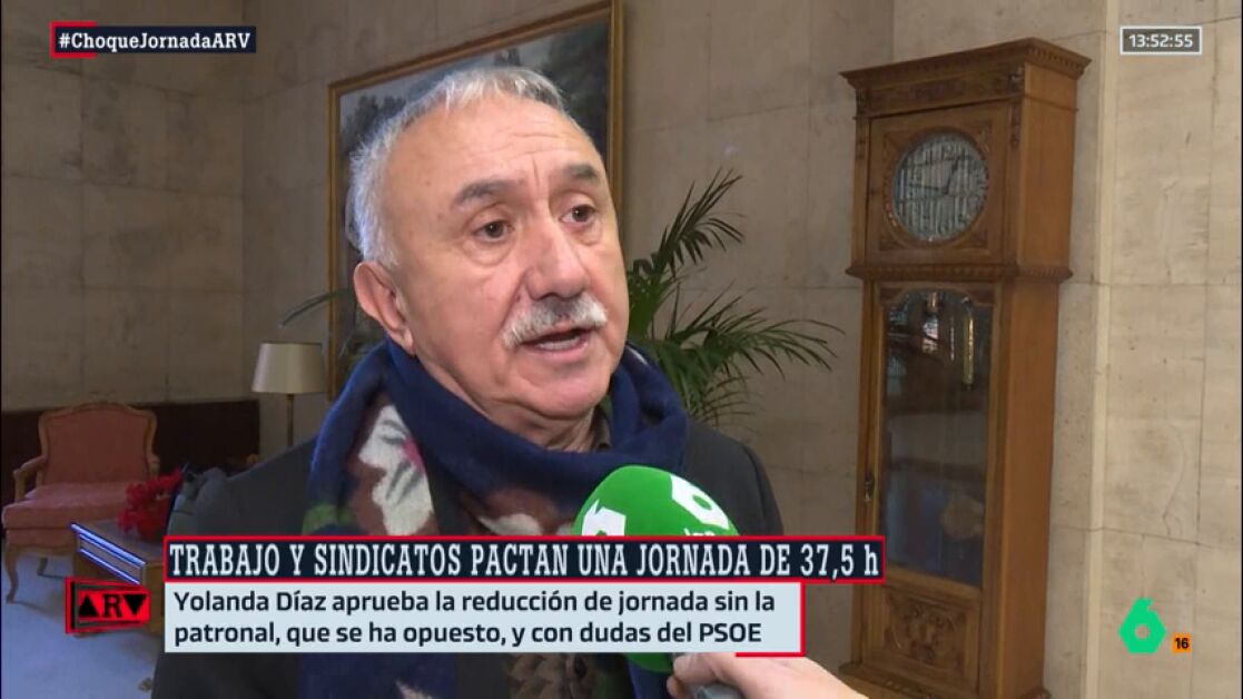 Pepe Álvarez, secretario general de UGT y uno de los protagonistas de la jornada después de firmar un acuerdo sobre la reducción de la jornada laboral con CCOO y el ministerio de Trabajo liderado por Yolanda Díaz, habla con Al Rojo Vivo sobre este texto que va a beneficiar a 12 millones de españoles.