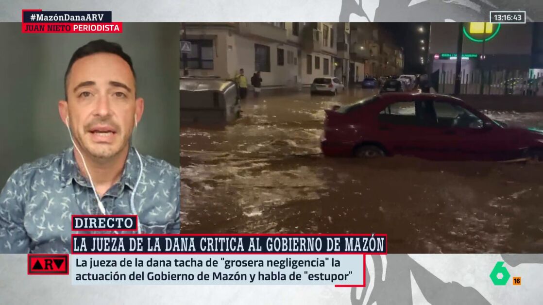El periodista Juan Nieto, buen conocedor de la política valenciana, valora en este vídeo el nuevo auto en el que la magistrada Nuria Ruiz Torralba tacha de "grosera negligencia" la actuación del Gobierno de Mazón.