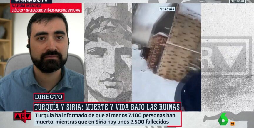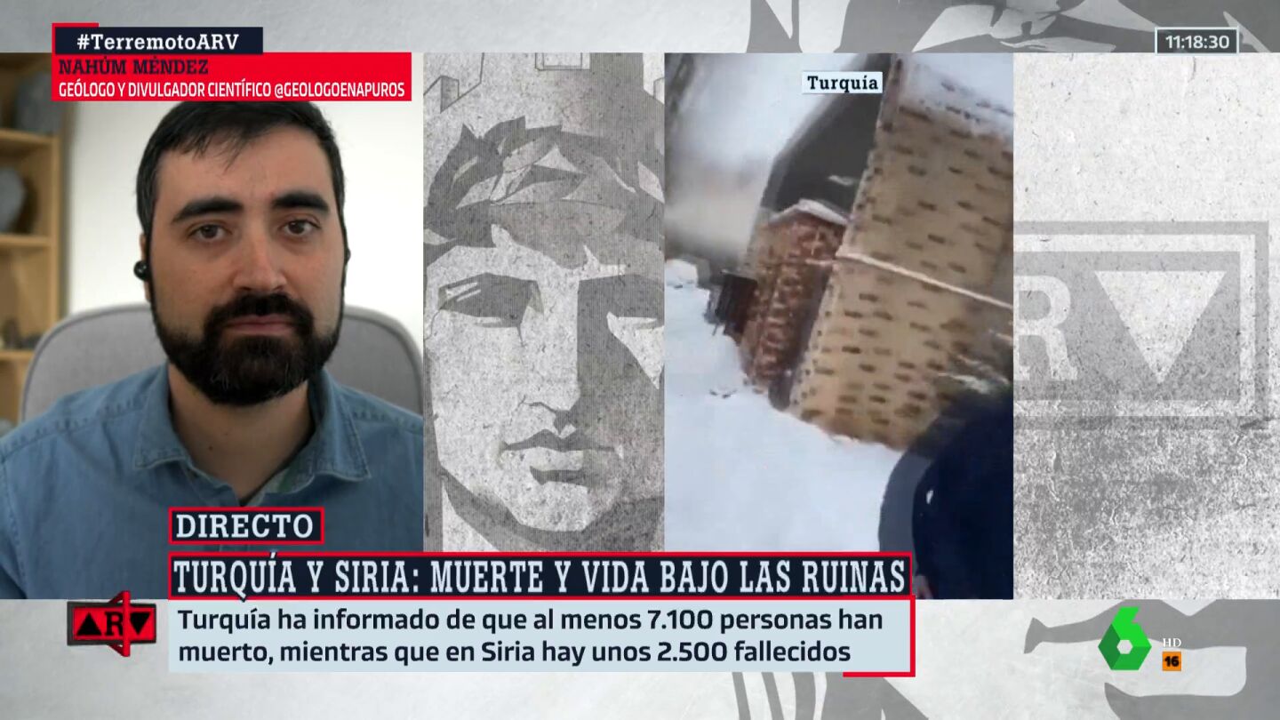 ¿Es posible que se produzca una réplica del terremoto que ha destruido completamente ciudades de Siria y el norte de Turquíacon una intensidad mayor que la del sismo del día seis? El geólogo Nahúm Méndez responde a esta pregunta en Al Rojo Vivo, descartando esa posibilidad: "Las réplicas suelen tener siempre una magnitud menor".