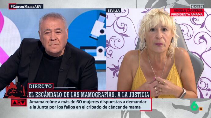 Ángela Claverol, presidenta de AMAMA Sevilla, habla en directo con Antonio García Ferreras sobre el escándalo de las mamografías en Andalucía. Lamenta que ninguna de las más de 100 mujeres que se reunieron en la asociación haya recibido una llamada de la Junta para ser informada.