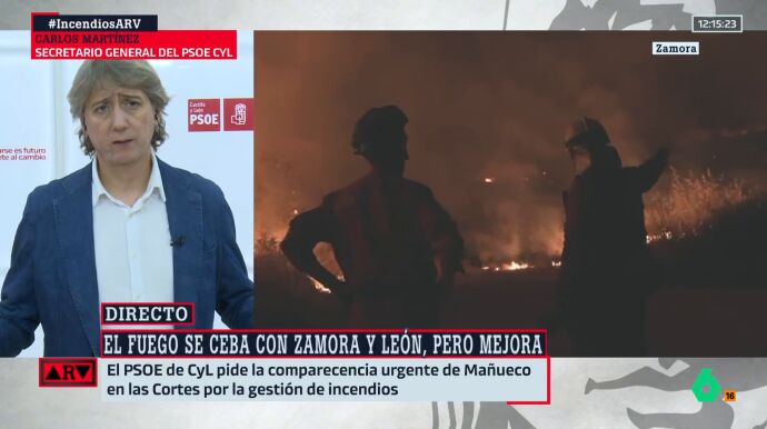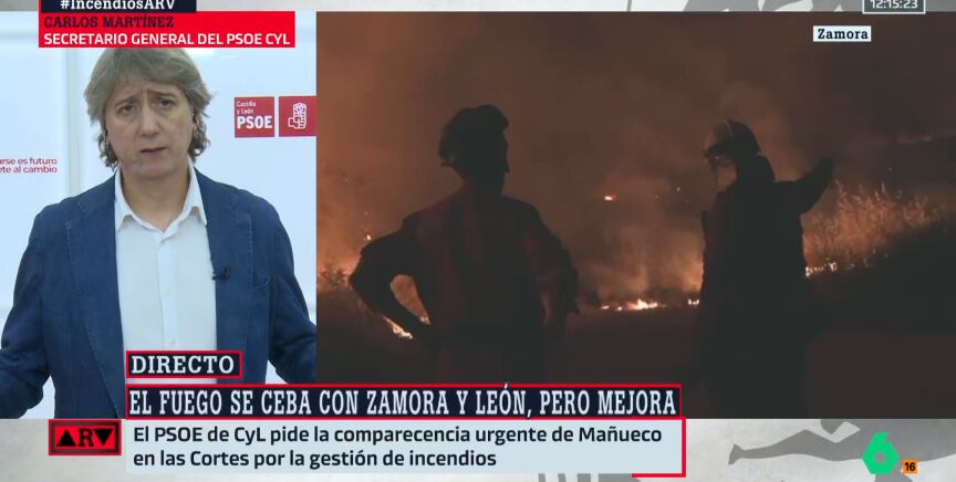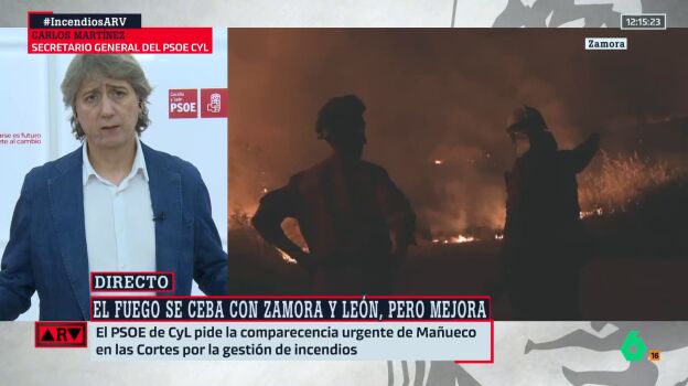 El PSOE de Castilla y León ha pedido la comparecencia urgente de Alfonso Fernández Mañueco en las Cortes para que dé explicaciones por la gestión de los incendiosque están arrasando la comunidad. Su secretario general, Carlos Martínez, reprocha desde Al Rojo Vivo al presidente autonómico su "orgullo mal entendido" y la "desidia" con la que, dice, está abordando "este y otros muchos temas".
