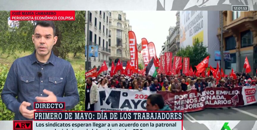 José María Camarero ha admitido que es "complicado" que se aplique la jornada laboral que piden los sindicatos debido a la estructura de la economía española. El periodista ha señalado que se establezca en el BOE una jornada laboral de 37 horas y media para todos los trabajadores.