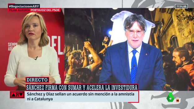 La ministra de Educación y Formación Profesional en funciones y portavoz del PSOE, Pilar Alegría, ha explicado en Al Rojo Vivo la razón por la que en el acuerdo al que han llegado con Sumar no se menciona la amnistía.