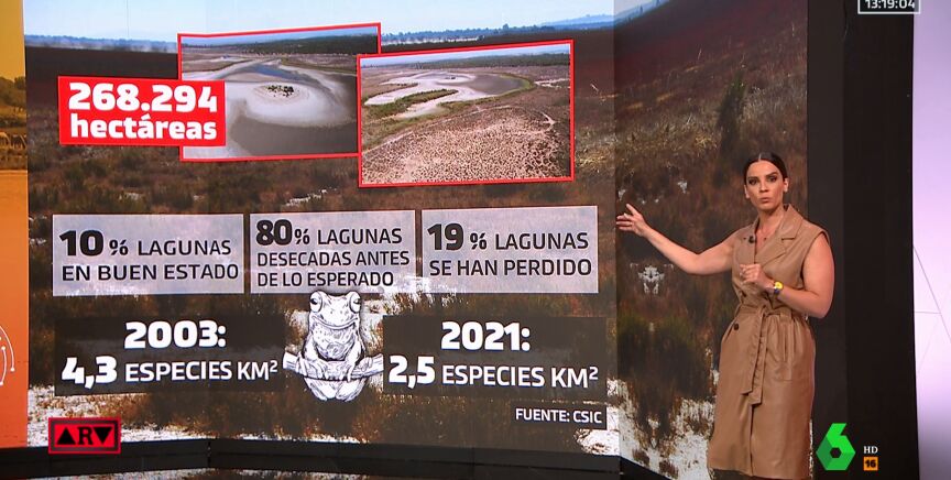 El tremendo impacto que eso tiene repercute en la fauna y la vegetación de la zona. Por ejemplo, los anfibios han reducido su presencia en Doñana: de las 4,3 especies por kilómetro cuadrado que había en 2003 a las 3,5 especies por kilómetro cuadrado que se registraron en 2021.