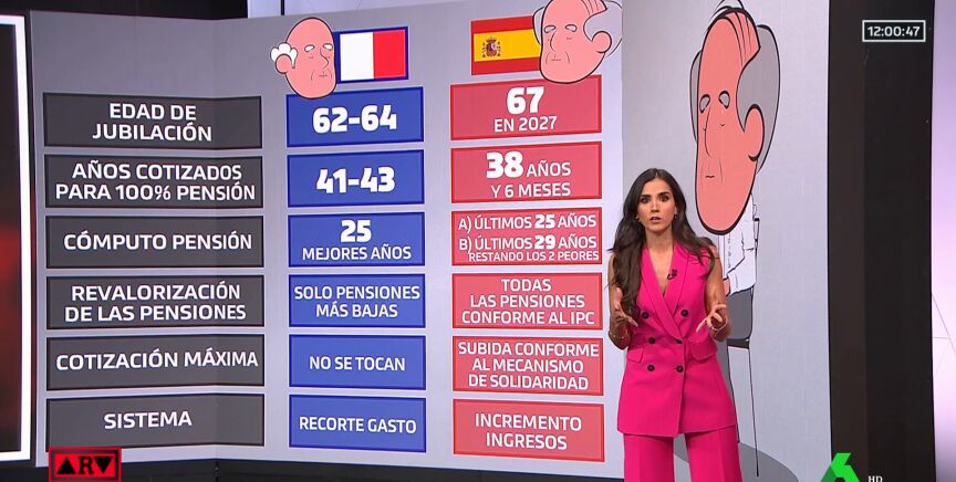 - Años cotizados para acceder al 100% de la pensión: en Francia es necesario haber cotizado 43 años para tener derecho a la pensión plena, mientras que la reforma de España no ha tocado este concepto, que se mantiene en 38,5 años.