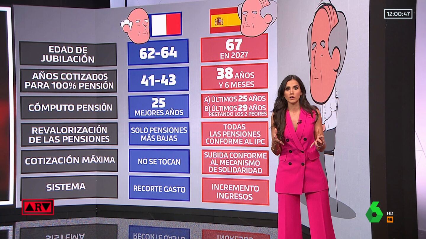 Feijóo pone como ejemplo la reforma de las pensiones emprendida por el Gobierno francés, que está generando un enorme rechazo social en el país vecino. ¿En qué se diferencia de la propuesta del Ejecutivo español? Las comparamos en este vídeo.