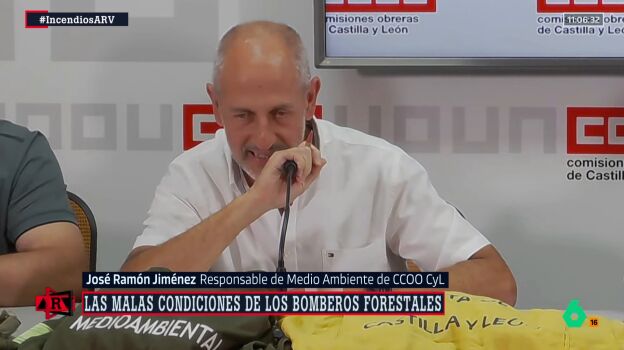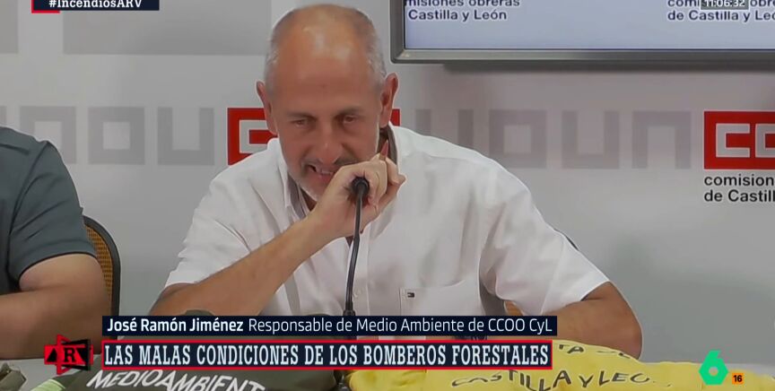 José Ramón Jiménez, responsable de Medio Ambiente de Comisiones Obreras, se ha quebrado este martes al denunciar la precariedad del operativo que combate los incendios en Castilla y León. "Me emociono y me da por culo...", ha alcanzado a decir antes de interrumpir su intervención, visiblemente sobrepasado por la situación que atraviesan los brigadistas frente al fuego.