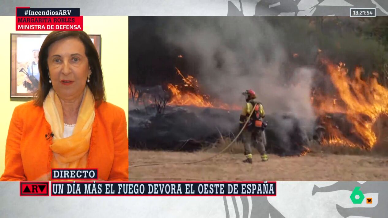 En una entrevista en Al Rojo Vivo, Robles ha comentado que estos días en los que el fuego ha asolado buena parte de España, ha habido pilotos del Ejército del Aire que han mostrado su "frustración" porque no podían volar por las condiciones meteorológicas. "Estaban los medios, pero no podían volar", ha indicado y ha añadido: "no se ha escatimado ningún tipo de medio, ni humano ni material". Además, ha recordado que "el ataque directo al incendio solo lo pueden hacer aquellos que tienen una preparación especial". "