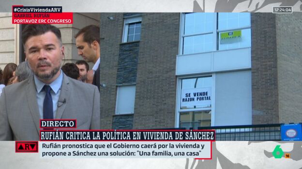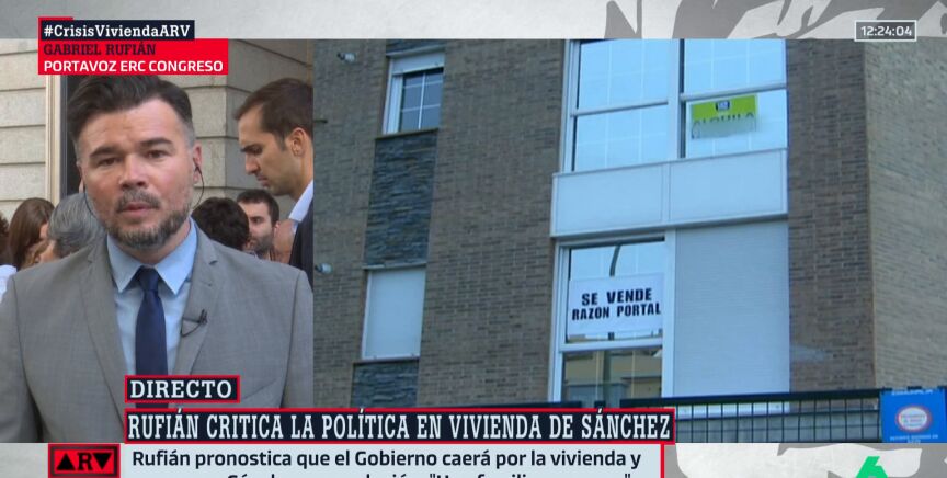 Rufián reconoce que la izquierda "ha fracasado" en política de vivienda y propone "freír a impuestos" al que tenga dinero para especular