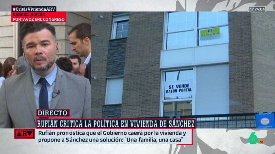 Rufián ha defendido el lema "una familia, una casa", explicando que a partir de ahí lo que hay que hacer es "freír a impuestos" al que tenga dinero para comprarse una casa para especular.