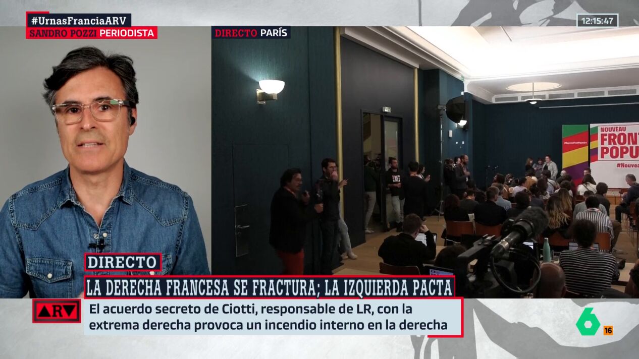 "Es una situación delirante la que se vive ahora en Francia", explicó en Al Rojo Vivo Pozzi, al mismo tiempo que calificó la situación de "inquietante", tal y "como ha dicho la propia [Marine] Le Pen". Unas afirmaciones que llegan después de haber "visto ese bloque de izquierdas que incluye el Partido Socialista, la Francia Insumisa, los ecologistas y los comunistas", recordó el periodista.