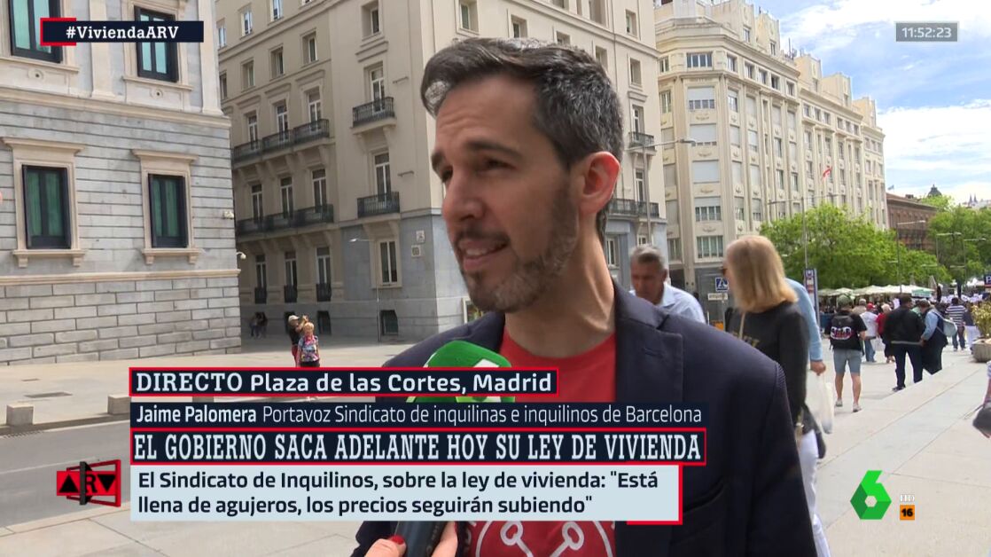 Jaime Palomera, portavoz del sindicato de inquilinos e inquilinas de Barcelona, ha indicado en Al Rojo Vivo cuáles son los aspectos positivos y los negativos que ve de la nueva ley de viviendadel Gobierno.