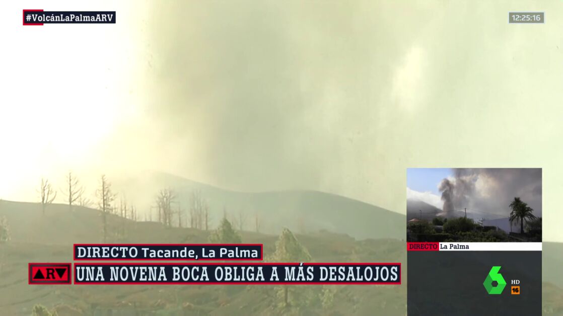 Desde uno de los últimos puntos desalojados en Tacande, barrio del municipio de El Paso, la enviada de laSexta Aurora Lozano, describe el rugido ensordecedor que emite ahora mismo el volcán. Además, señala la intensidad del olor que se respira en la zona.